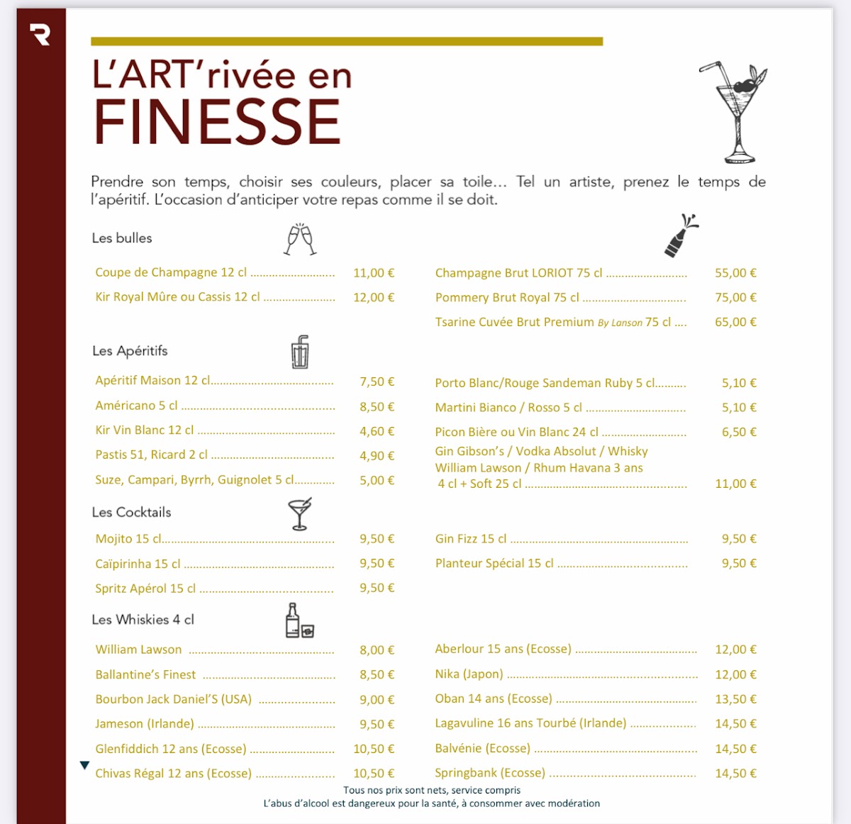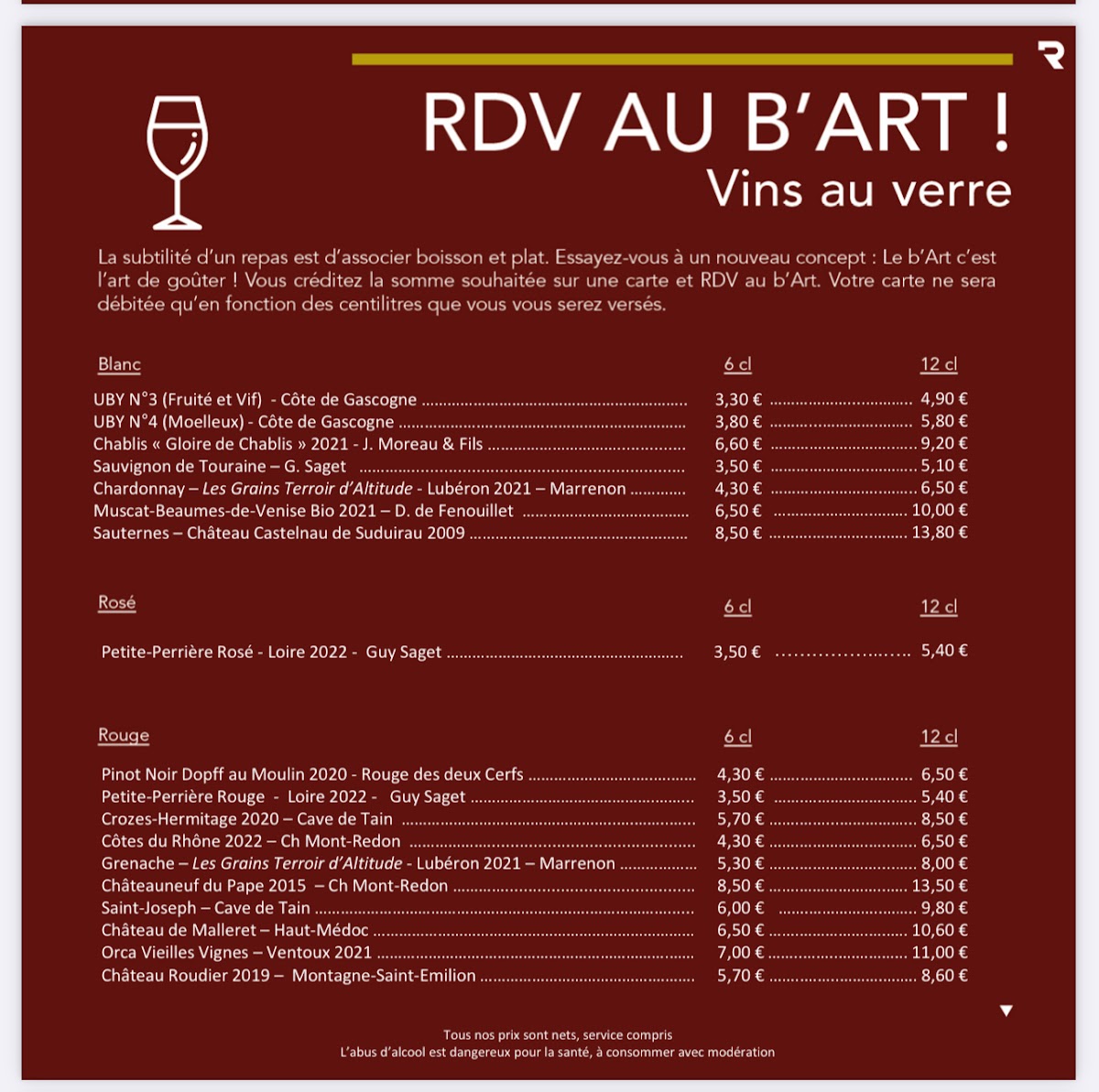 Introducing the menu of RDV Volubilis Douai, located in the heart of Douai, France, this charming establishment offers a delightful blend of culinary experiences. The menu features a variety of options, including les vins au verre and an array of aperitifs to kick off your dining journey. For a more substantial offering, guests can choose from the Bistro Menu at €27 or the indulgent Smart Menu at €46, showcasing diverse selections from entrées to desserts.